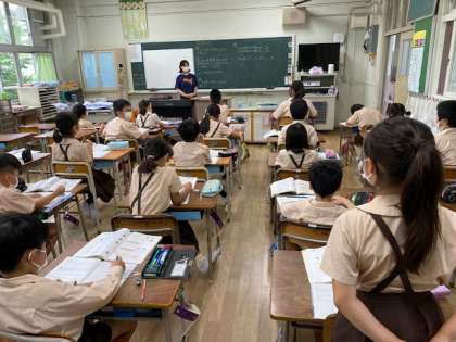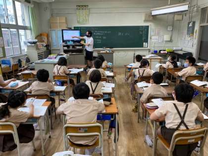 3年生1・2組の授業のようすです。どちらも算数で、「数直線」や「大きな数の計算のしかた」の学習に取り組んでいます。