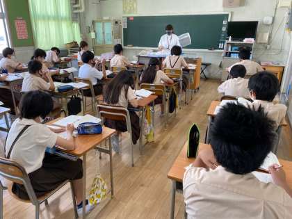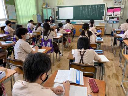 6年生1・2組の授業のようすです。どちらも国語で、「いろいろな複合語」について調べたりしています。
