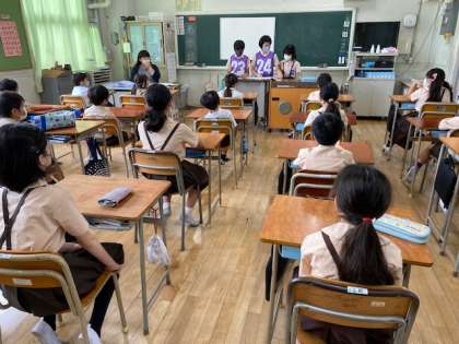 本日朝、新しいたてわり班としての3回目の活動を行いました。