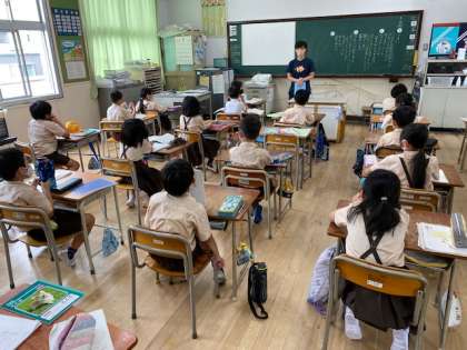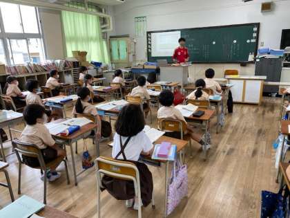 2年生1・2組の授業のようすです。どちらも授業に入る前に、明日の連絡や生活面の注意をしています。