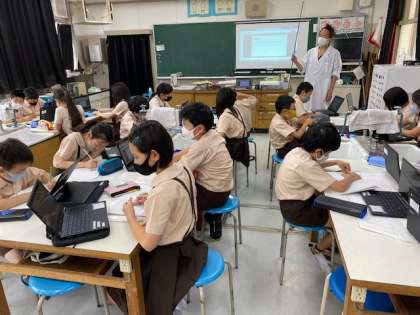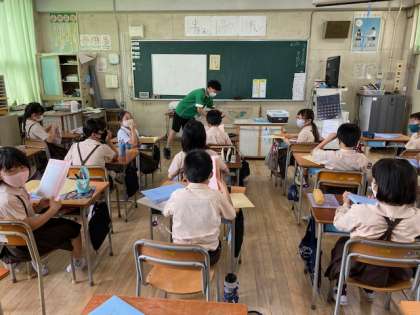 4年生1・2組の授業のようすです。1組は理科で、「春とくらべて、生き物のようすは、どのようになっているのだろうか。」について自分で考えています。2組は学活で、「健康の記録」や「キャリアシート」を配付しています。