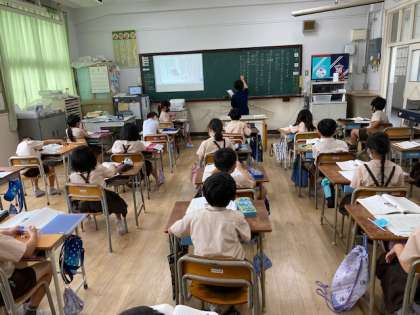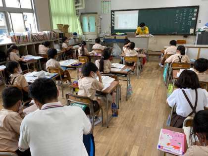 2年生1・2組の授業のようすです。どちらも国語で、「言いつたえられているお話を知ろう」の学習をしています。