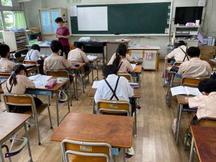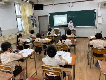 本日3年生は2クラスを3つのコースに分けて、算数の習熟度別授業を行っています。「ぼうグラフをかこう」の単元に取り組んでいます。