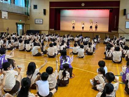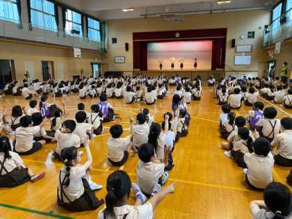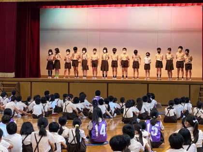 本日は、今年度最初の児童集会がありました。昨年度は、すべて運動場で開きましたが、約1年4か月ぶりに講堂で開くことができました。