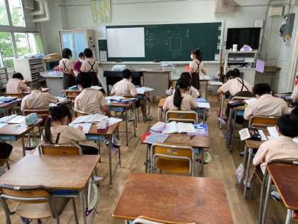 本日3年生は2クラスを3つのコースに分けて、算数の習熟度別授業を行っています。「わかりやすいグラフの表し方」に取り組んでいます。