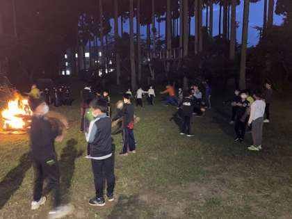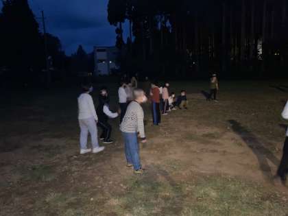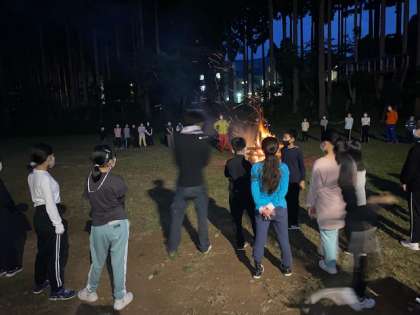 キャンプファイヤーのようすです。いろいろなスタンツが行われています。