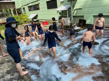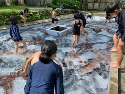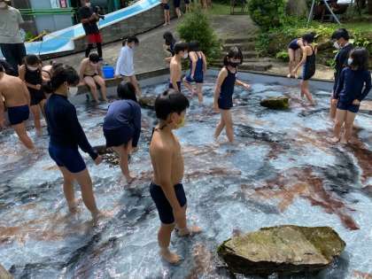 2組が魚つかみをしています。