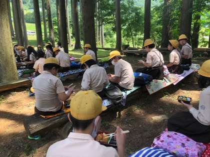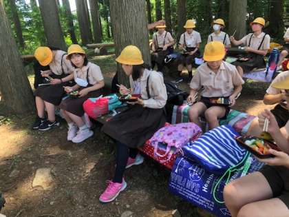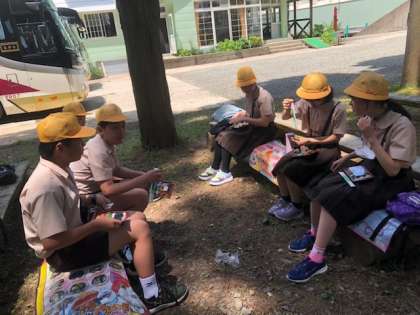 11時20分頃、無事宿舎に到着し、昼食のお弁当を食べています。