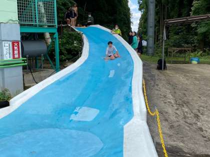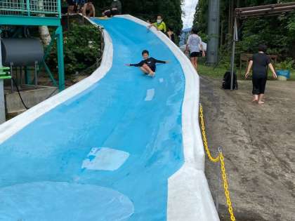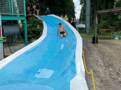 2組がウォータースライダーすべりをしています。