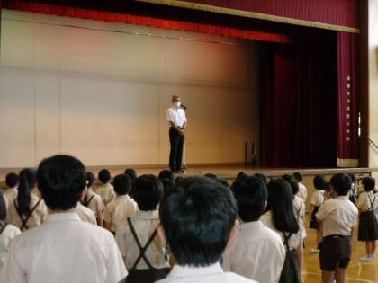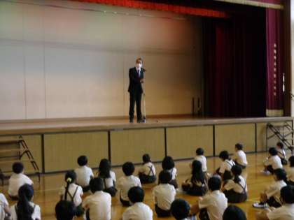 8月25日(水)、いよいよ2学期がスタートしました。再び子どもたちの活気と笑顔が学校に戻ってきました。始業式は、1学期の終業式と同様、感染症予防対策と熱中症対策の両方を講じながら講堂で行いました。子どもたちの真剣な表情が写真からも伺えます。