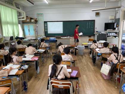 2年生1・2組の授業のようすです。どちらも国語で、「うれしくなる ことばを あつめよう」の単元の学習をしています。