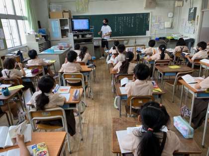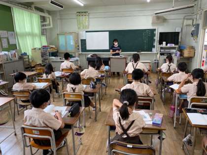 3年生1・2組の授業のようすです。どちらも国語で、「サーカスのライオン」の単元の学習をしています。