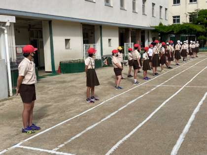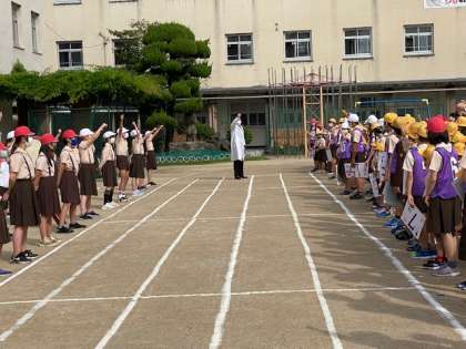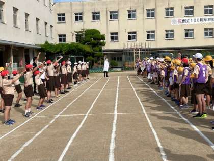 本日は、久しぶりに外で児童集会を開催しました。
