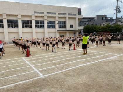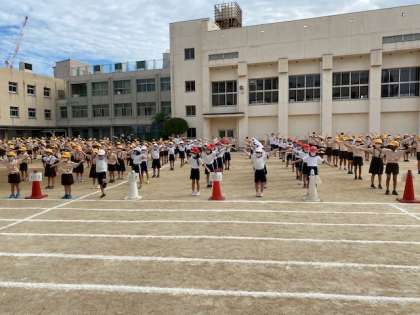 児童全員で「ラジオ体操」と「EX体操」の練習を行いました。あと2週間練習に頑張ってほしいものです。