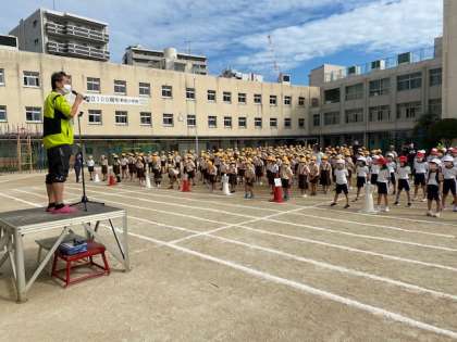 体操の練習の後は、通常の児童朝会の形式で行いました。
