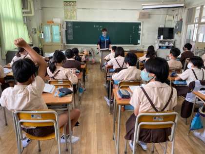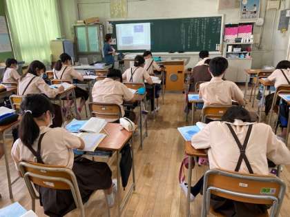 6年生1・2組の授業のようすです。どちらも国語で、「海のいのち」のお話の主人公の心情の変化とその理由について考えています。