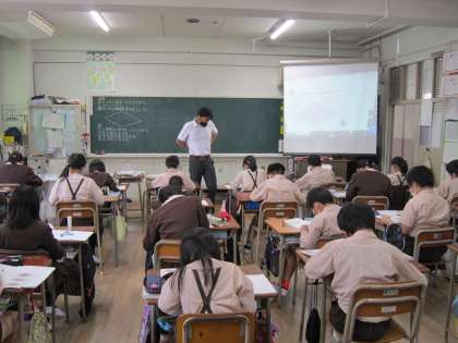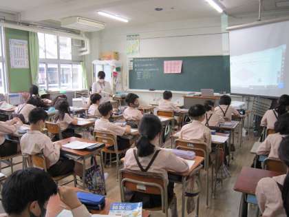 5年生の学習の様子です。算数科で、「ひし形」の面積の求め方を既習事項を活用しながら求めています。