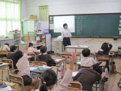 2年生の学習の様子です。算数科で、8の段のかけ算について学習しています。