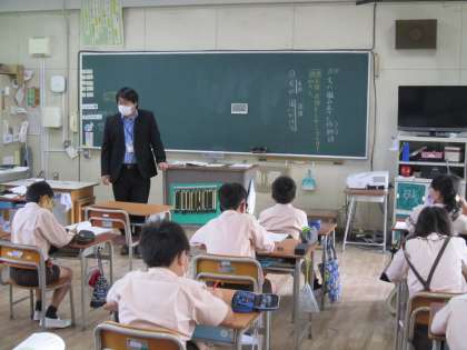 4年生の学習の様子です。国語科で、文の構成(主語・述語、修飾語など)について学習しています。