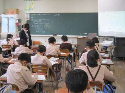 5年生の学習の様子です。算数科で、多角形の面積の求め方について学習しています。