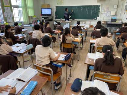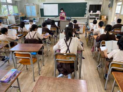 3年生1・2組の授業のようすです。どちらも国語で、「案内の手紙を書こう」の単元の学習をしています。