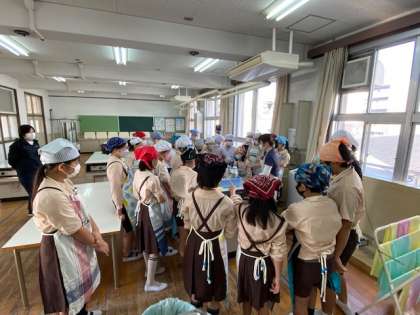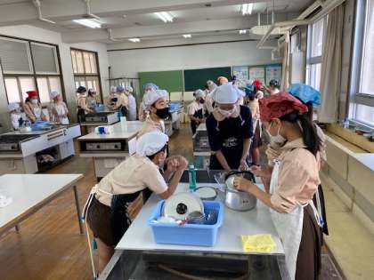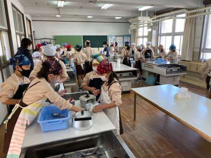 本日2・3時間目、5年2組で家庭科の調理実習がありました。