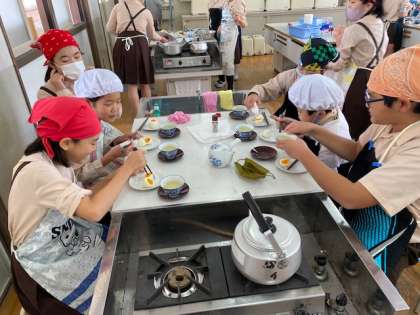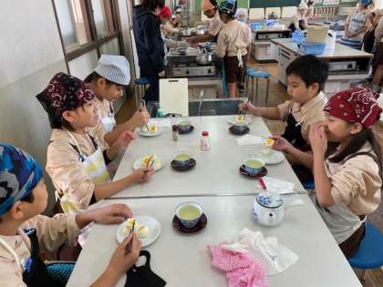 できあがった「ゆでたまご」にそれぞれの好みで塩やこしょう、マヨネーズ等をかけて食べました。