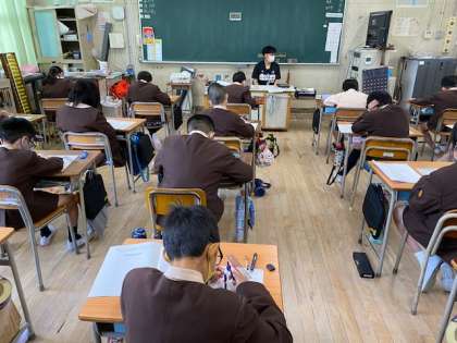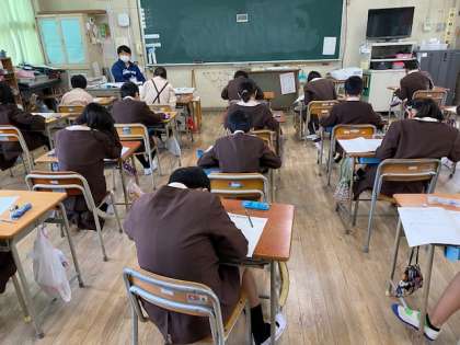 同じく写真は、4年生1・2組の算数の調査のようすです。
