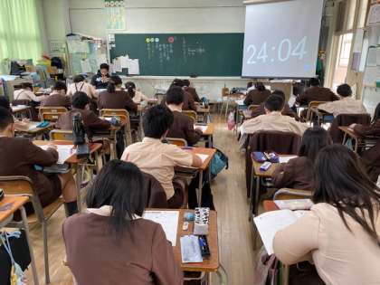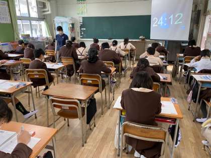 同じく写真は、5年生1・2組の算数の調査のようすです。