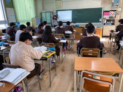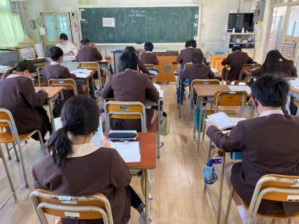 6年生1・2組の授業のようすです。どちらも算数で、1組は「プログラミング」の学習をしています。2組は教科書の復習問題に取り組んでいます。
