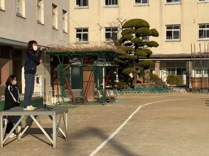 校長先生より「阪神淡路大震災」、「耐寒かけ足」や暦の「大寒」についてと新型コロナウイルスへの注意のお話がありました。