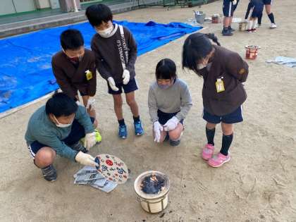 子ども達は、炭に火がつくまで一生懸命うちわであおいだりして、やっと火がついた時の喜びはとても大きかったです。