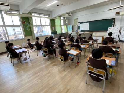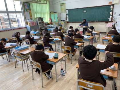 1年生1・2組の授業のようすです。どちらも国語で、テストをしています。