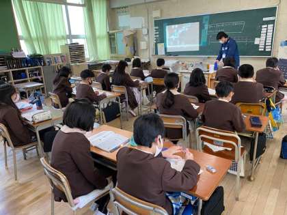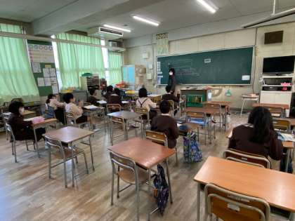 1組は出席人数が少ない中、特別支援担当が授業をしており、2組は1組の担任が授業をしています。