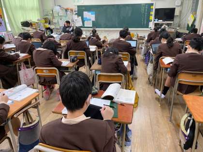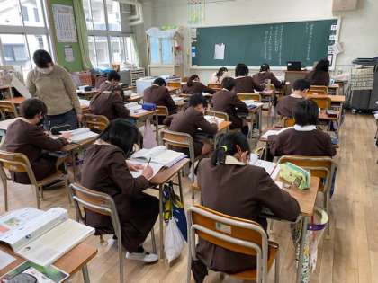 5年生1・2組の授業のようすです。どちらも国語で、「資料を見て考えたことを話そう」の単元で「食品ロスについて」考えをまとめています。