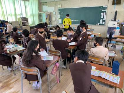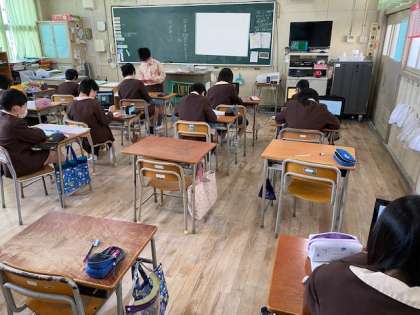 4年生1・2組の授業のようすです。1組は自習をしています。2組は国語で、漢字テストをする前に、テスト勉強をしています。