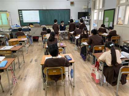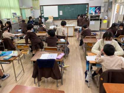 2年生1・2組の授業のようすです。どちらも算数で、自習をしています。