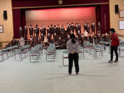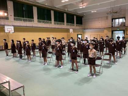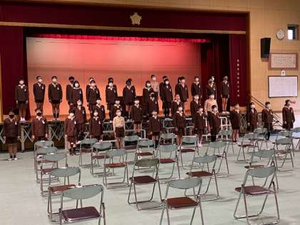 6年生1・2組の授業のようすです。卒業式の流れの練習をしています。