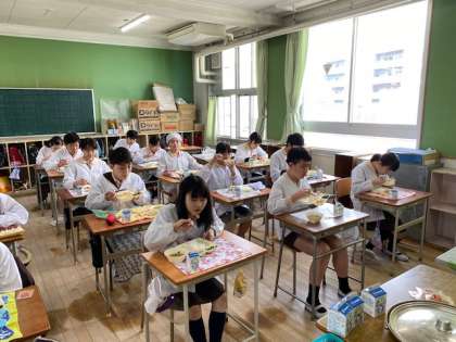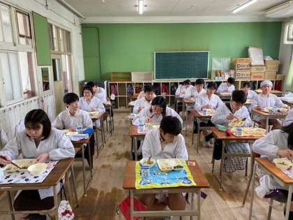 明日、卒業式を迎える6年生にとって、小学校生活最後の給食です。しっかり味わって食べましょう。