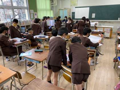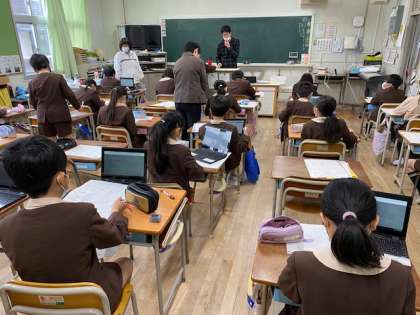 3年生1・2組の授業のようすです。どちらも算数で、教科書の問題に取り組んだり、プリントに取り組んだりしています。