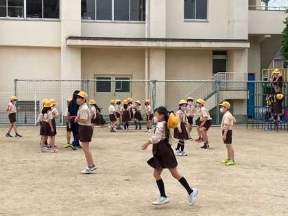 休み時間には運動場で元気良く遊んでいます。工事が始まるまでにできる限り外で運動できるようにしたいです。