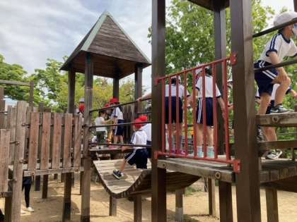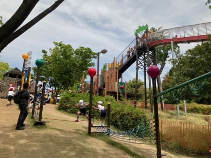 元浜緑地にきました。電車の中は静かに過ごし、並んで上手に歩きました。前半の様子です。