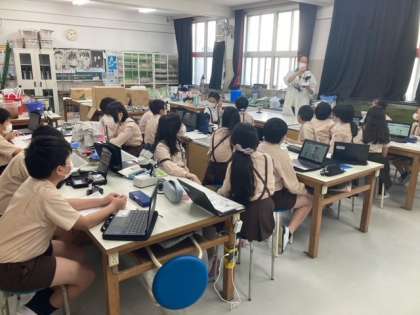 5年生は理科で解剖顕微鏡や双眼実体顕微鏡を使ってメダカの卵を観察しました。実験道具や器具の扱い方に慣れてきました。