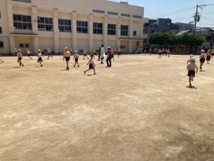 休み時間はいつものように元気よく遊んでいます。外遊びの時は、特に熱中症対策に留意したいです。