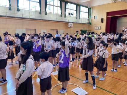 児童集会は、たてわり班で「ジェスチャーゲーム」をしました。終わってから来週の「たてわり班清掃」の場所や分担をみんなで確かめました。