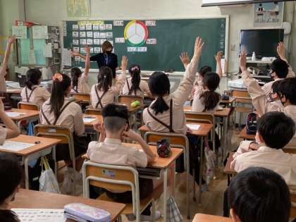 6年生は食育の授業「バイキングにチャレンジしよう」で主食と主菜・副菜の栄養バランスについて考えました。自分の選んだメニューをもとにバランスの良い献立を知りました。一汁三菜についても学びました。