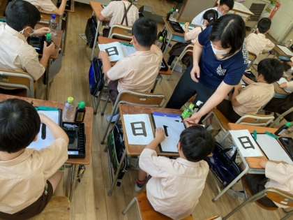 3年生は習字で「日」を書きました。姿勢に気をつけて手本をよく見ながら集中して筆を運びました。