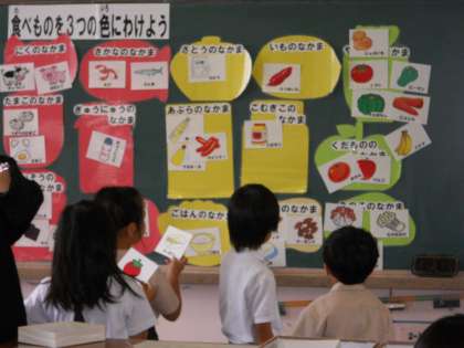 西淀川区内の栄養教諭の指導で、「食」や「栄養」のことについて 学習しました。子どもたちの「食」への関心は高く、学習内容に前向きに取り組んでいました。