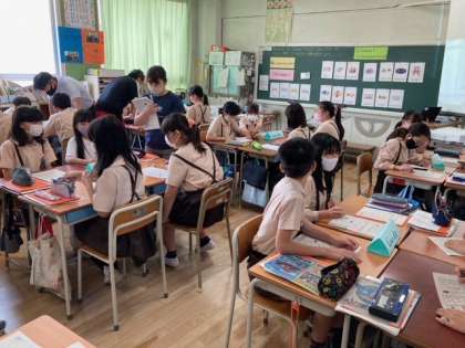 6年生は英語「Welcome to Japan」で季節ごとの日本の行事を伝えました。ジェスチャーやアクションを取り入れながら賑やかな雰囲気で何度も英語の表現を繰り返すことができました。