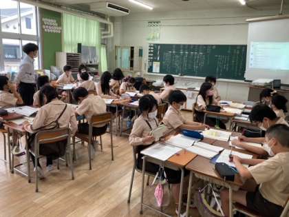 5年生の国語科「世界でいちばんやかましい音」は王子様の気持ちがどう変化したのか考えました。文章をもとに一人一人が自分の考えをまとめました。教育センターから指導員の先生にお越しいただき、より良い授業への助言をいただきました。